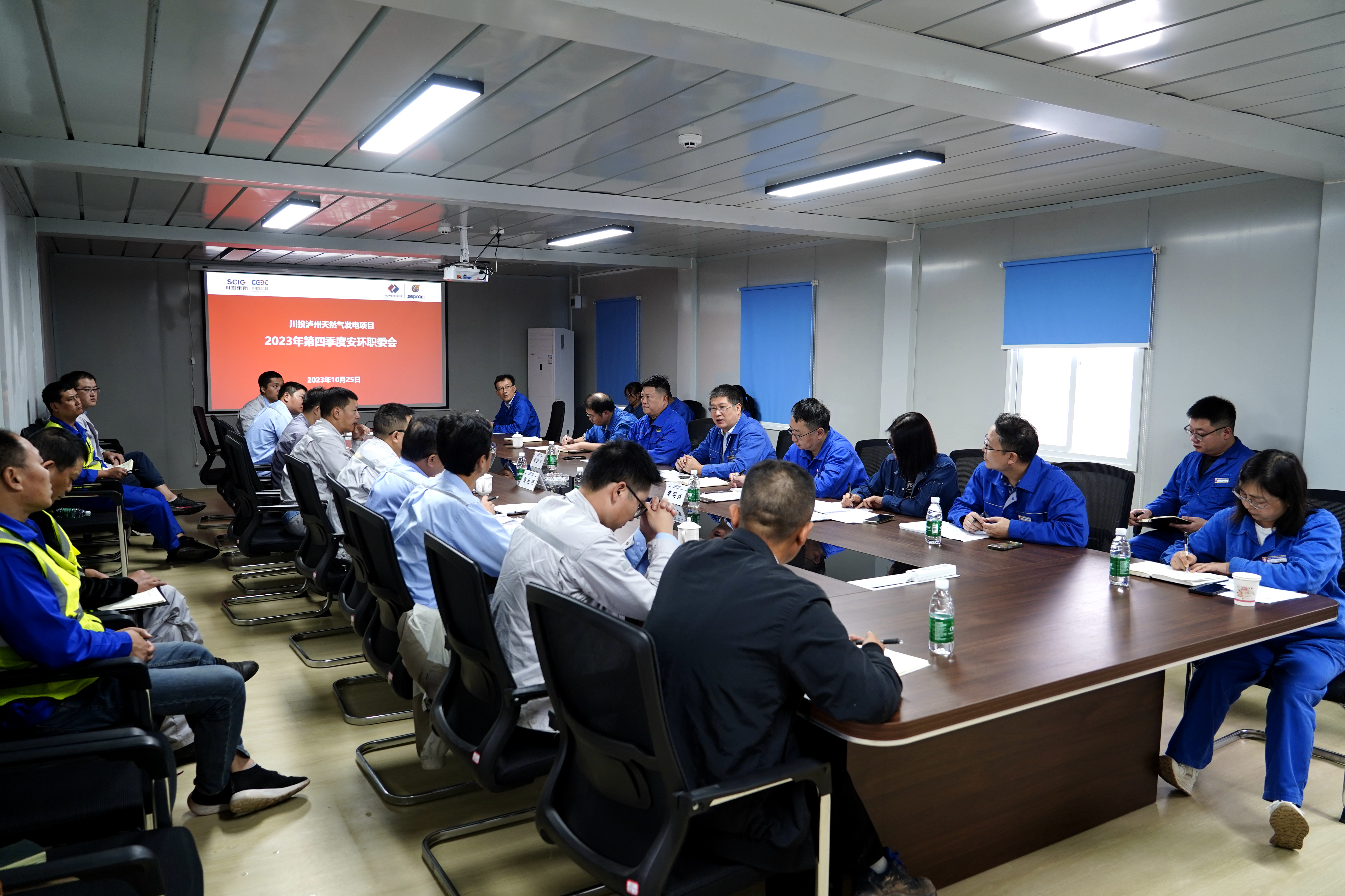 10月25日,瀘州氣電在川投瀘州天然氣發(fā)電項目聯(lián)合辦公區(qū)組織召開2023年第四季度安全生產(chǎn)、環(huán)境保護(hù)、職業(yè)健康委員會會議。會議由瀘州氣電副總經(jīng)理、安環(huán)職委會副主任、首席安全官張劍平主持。瀘州氣電董事長、總經(jīng)理劉勝金,副總經(jīng)理李明堯,各部門負(fù)責(zé)人及川投瀘州天然氣發(fā)電項目監(jiān)理項目部負(fù)責(zé)人、總承包項目部負(fù)責(zé)人、施工項目部負(fù)責(zé)人等20余人參加會議。