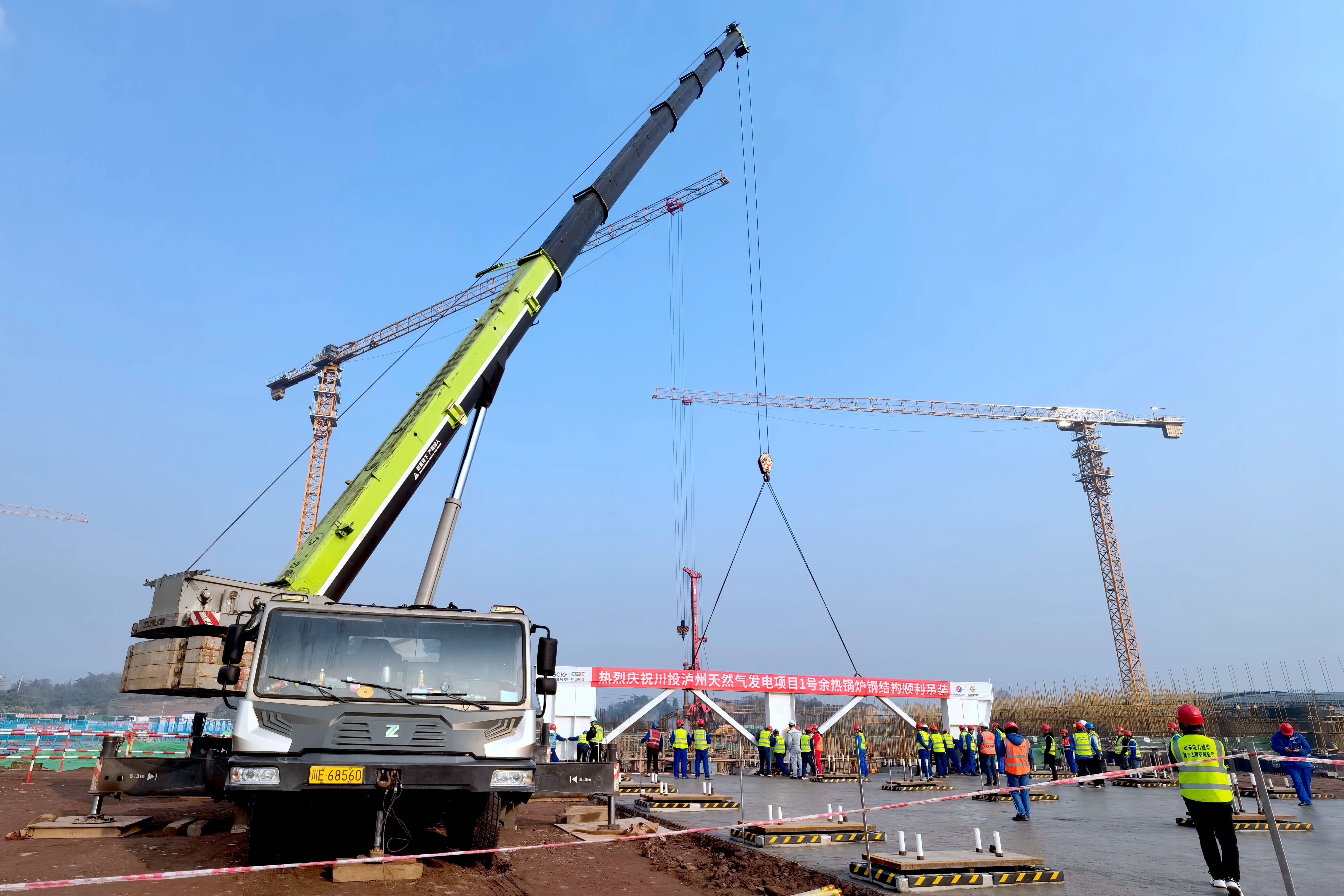 12月20日上午9時,川投瀘州天然氣發(fā)電項目一號余熱鍋爐第一榀鋼結(jié)構(gòu)順利開吊。