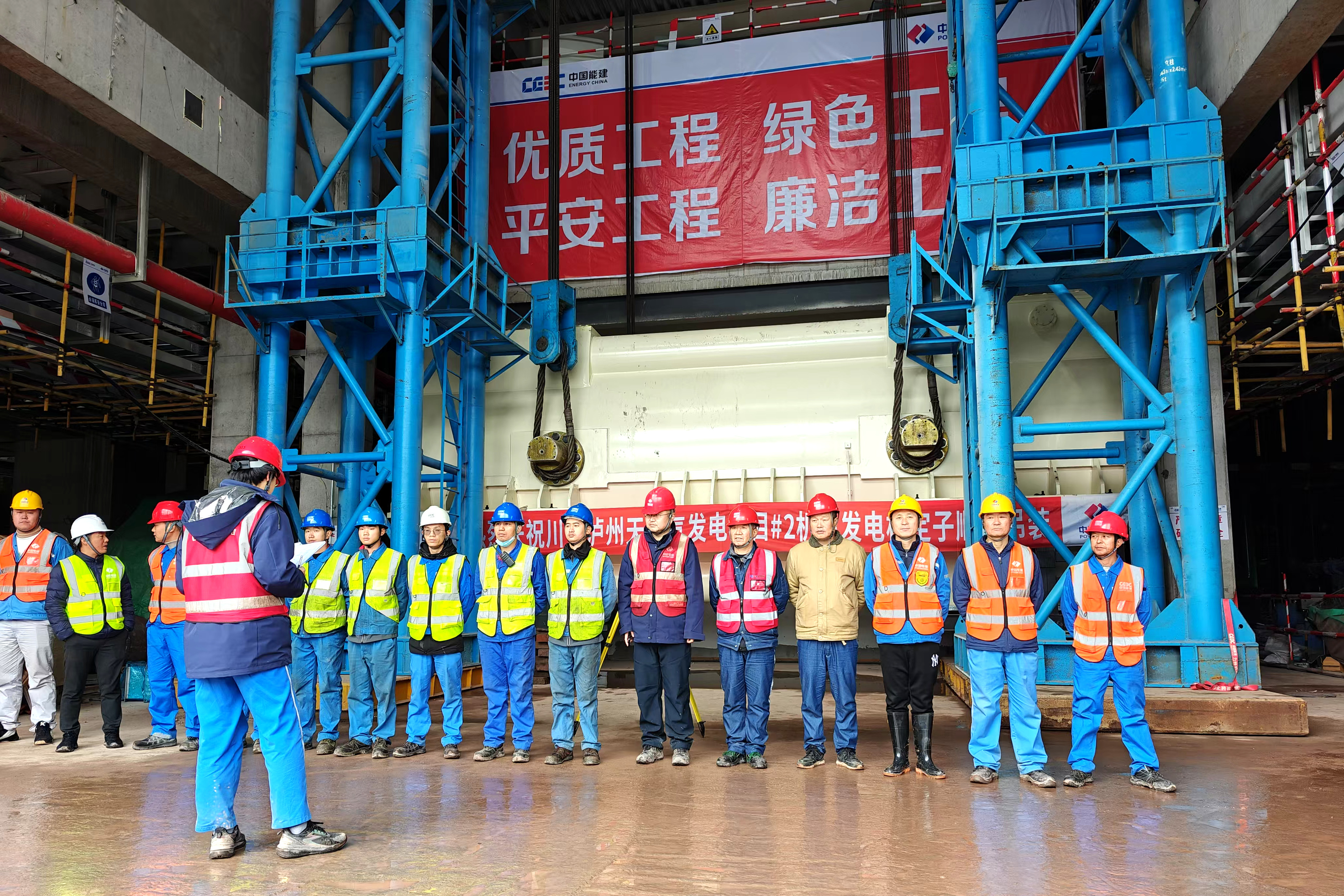 自發(fā)電機定子發(fā)貨以來,公司安排專人全程緊密跟蹤定子運輸進展,詳細記錄運輸保養(yǎng)情況,確保運輸防護措施落實到位。吊裝工作啟動前,公司組織了詳細的安全和技術(shù)交底,會同監(jiān)理、總承包單位、施工單位對吊裝工器具進行了全面檢查。在各項條件確認完善后,1月9日10時58分,正式啟動發(fā)電機定子吊裝。1月13日13時58分,2號發(fā)電機組定子機座底腳板精準(zhǔn)落入基礎(chǔ)臺板。
