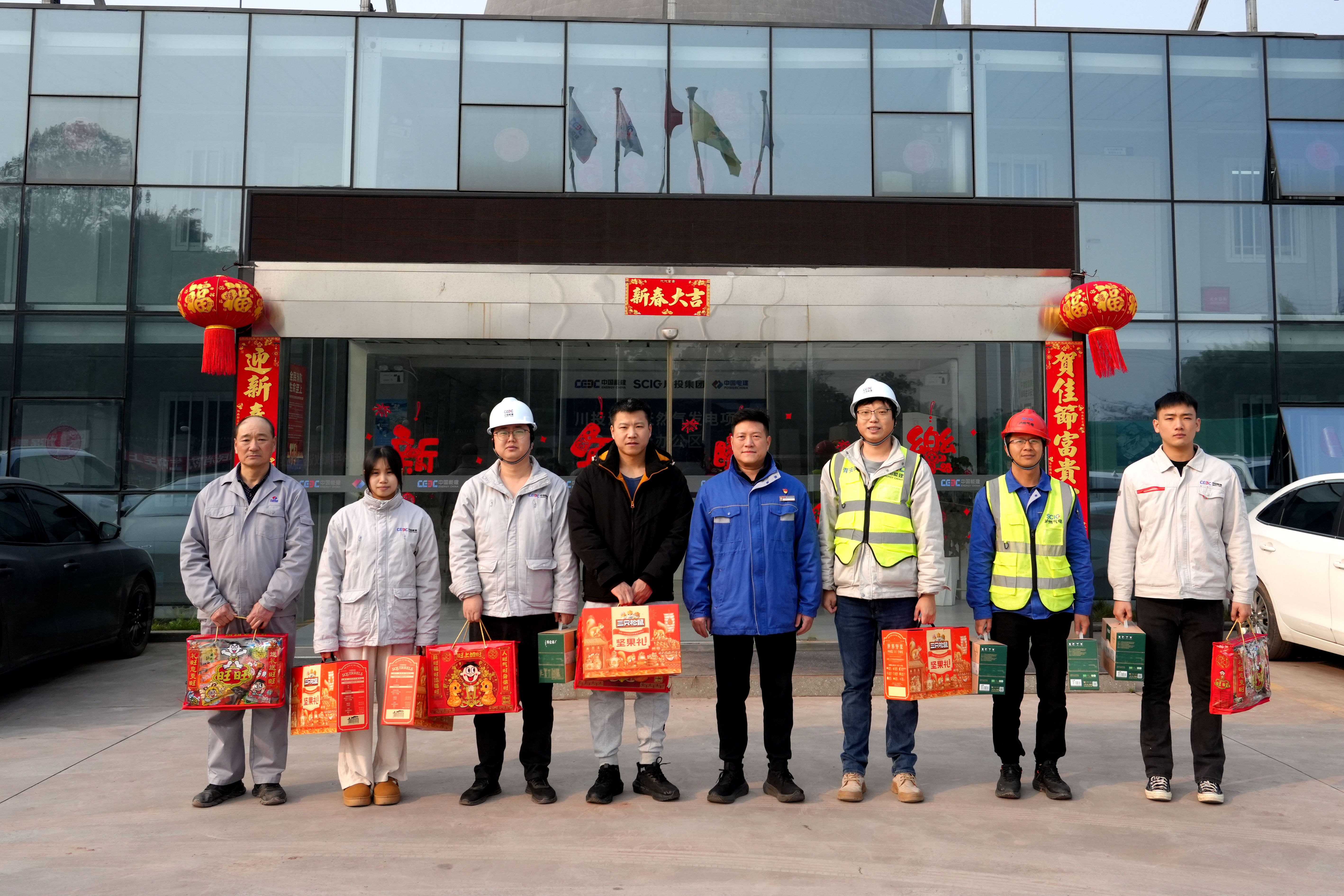 金蛇送福,萬象更新。1月29日,農(nóng)歷大年初一上午,受公司董事長、總經(jīng)理陳嵩委托,公司副總經(jīng)理張劍平帶隊(duì)慰問堅(jiān)守崗位的公司員工和參建單位值守人員,為他們送去誠摯的節(jié)日問候和新春祝福。