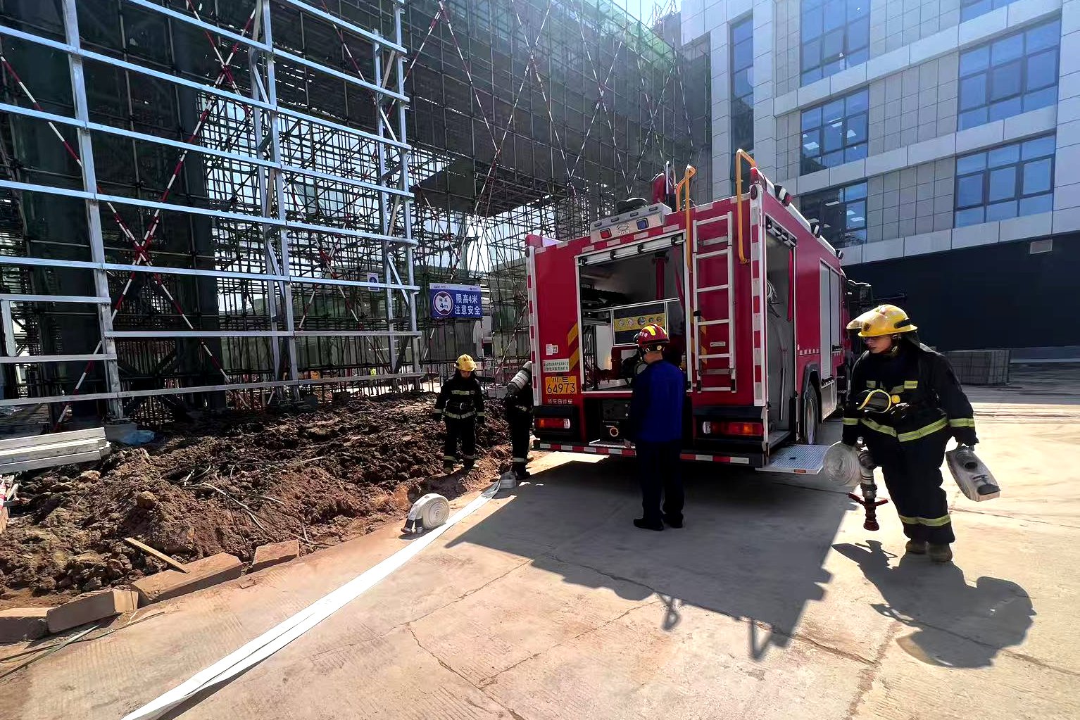 演練模擬了檢修油箱區(qū)域因違規(guī)動(dòng)火引發(fā)火情?;馂?zāi)發(fā)生后,現(xiàn)場(chǎng)立即啟動(dòng)應(yīng)急預(yù)案,第一時(shí)間報(bào)告火情并組織自救疏散。其間各參建單位迅速響應(yīng),按照預(yù)定方案有序開(kāi)展救援行動(dòng)。消防救援隊(duì)伍迅速趕到現(xiàn)場(chǎng),運(yùn)用滅火器、消防車(chē)等專(zhuān)業(yè)設(shè)備展開(kāi)立體化撲救。演練過(guò)程中,應(yīng)急處置組、疏散引導(dǎo)組、安全保衛(wèi)組三個(gè)工作組密切配合,在短時(shí)間內(nèi)完成明火撲滅及人員清點(diǎn)工作,充分展示了各單位在火災(zāi)事故發(fā)生時(shí)的應(yīng)急處置能力和協(xié)同作戰(zhàn)水平。